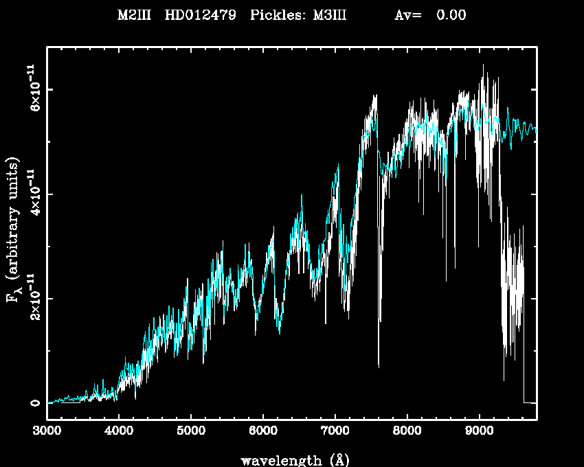 | Teff | 0 | Pickles' template | M3III | |||