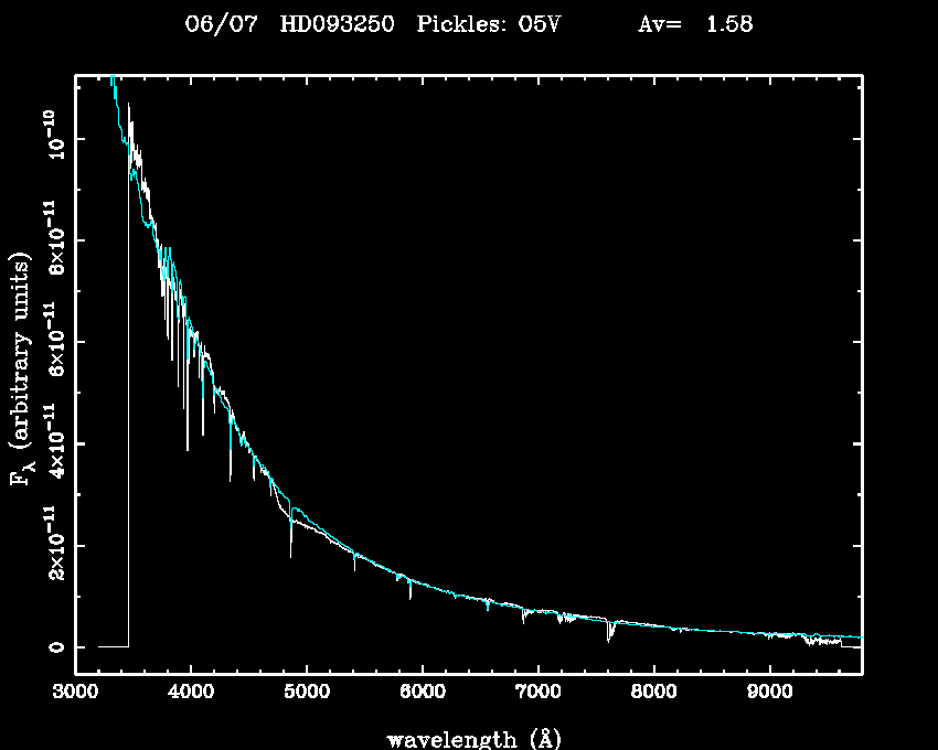 | Teff | 7155 | Pickles' template | O5V | |||
