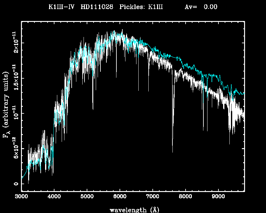 | Teff | 4699 | Pickles' template | K1III | |||