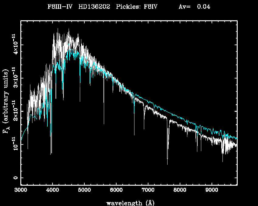 | Teff | 6080 | Pickles' template | F8IV | |||