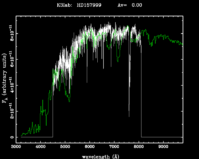 | Teff | 3973 | Pickles' template | K3I | |||