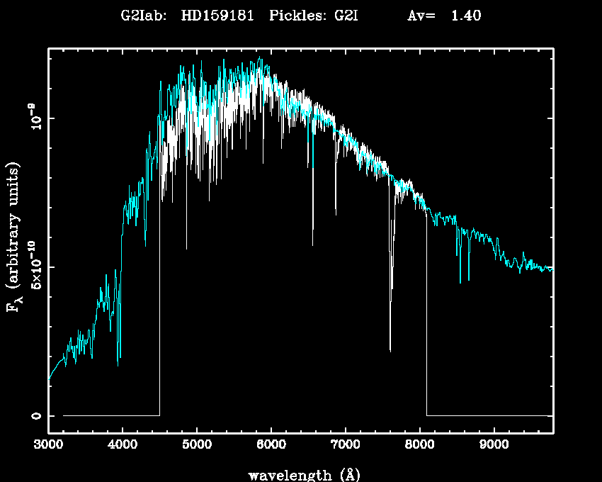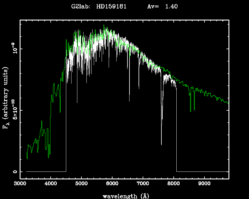| Spectral type | G2Iab: | Av | 1.4 | |||