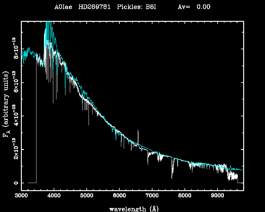 | Teff | 0 | Pickles' template | B8I | |||