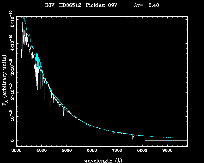 | Teff | 31500 | Pickles' template | O9V | |||