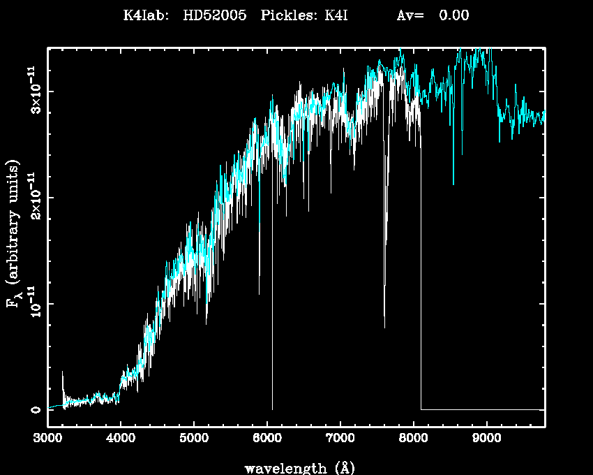 | Teff | 4118 | Pickles' template | K4I | |||