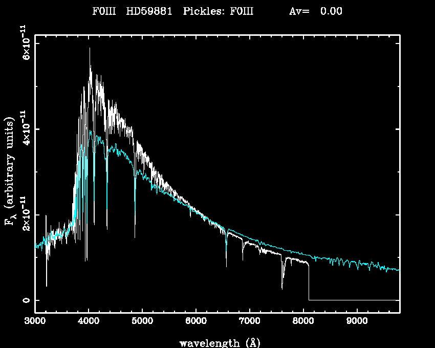 | Teff | 7636 | Pickles' template | F0III | |||