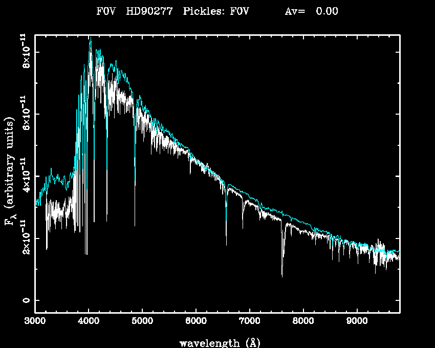 | Teff | 7318 | Pickles' template | F0V | |||