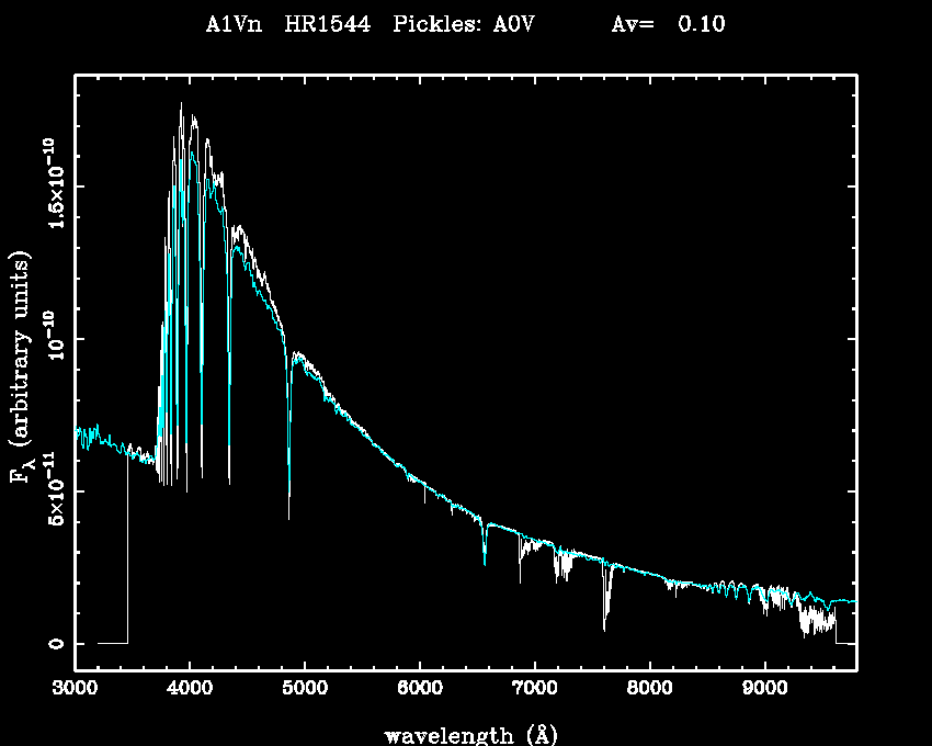 | Teff | 0 | Pickles' template | A0V | |||