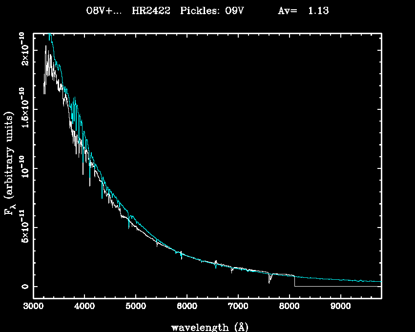 | Teff | 0 | Pickles' template | O9V | |||